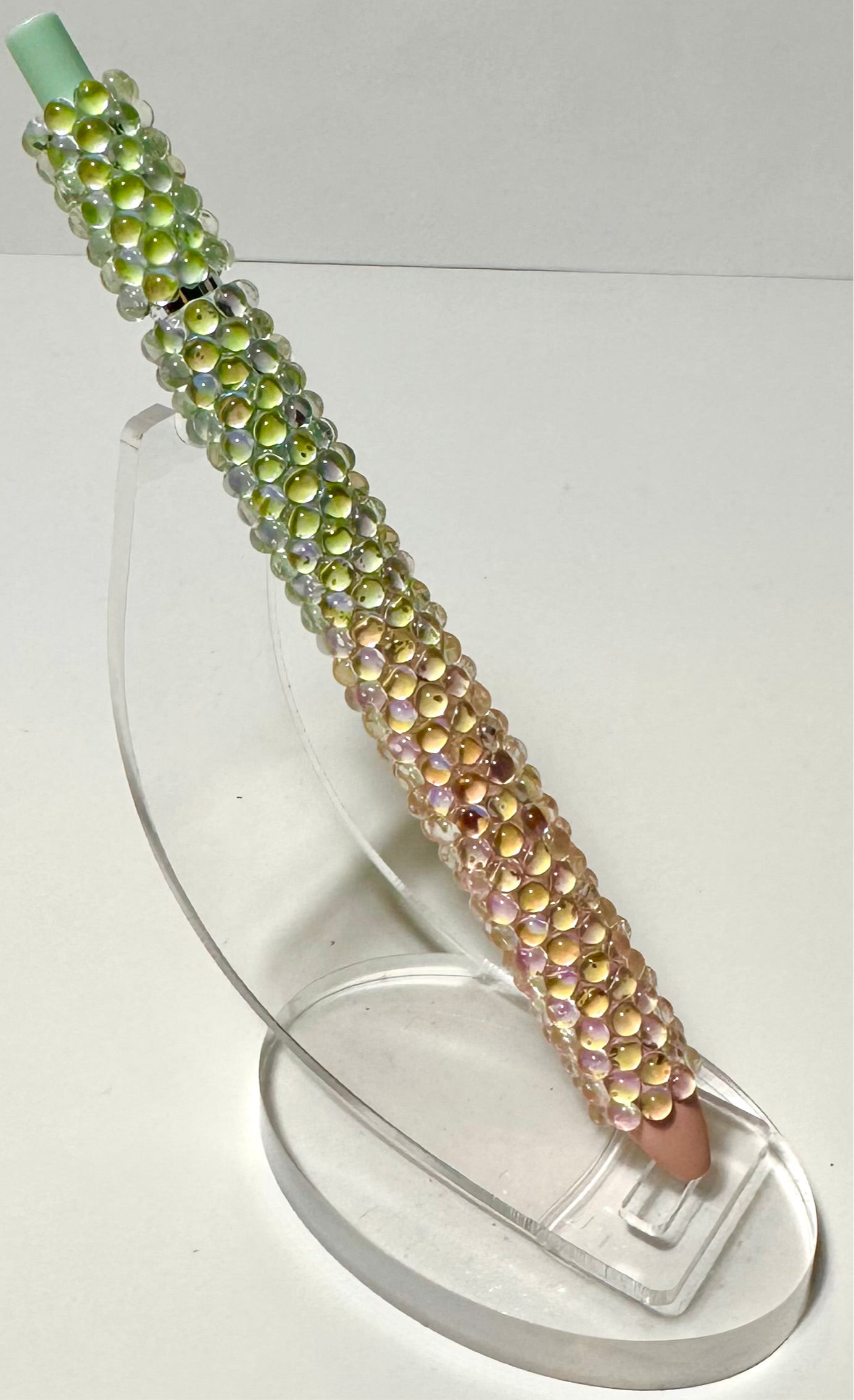 Aurora borealis Pens .Hand stoned Withmermaid stones Write in black. Colors go from left to right.