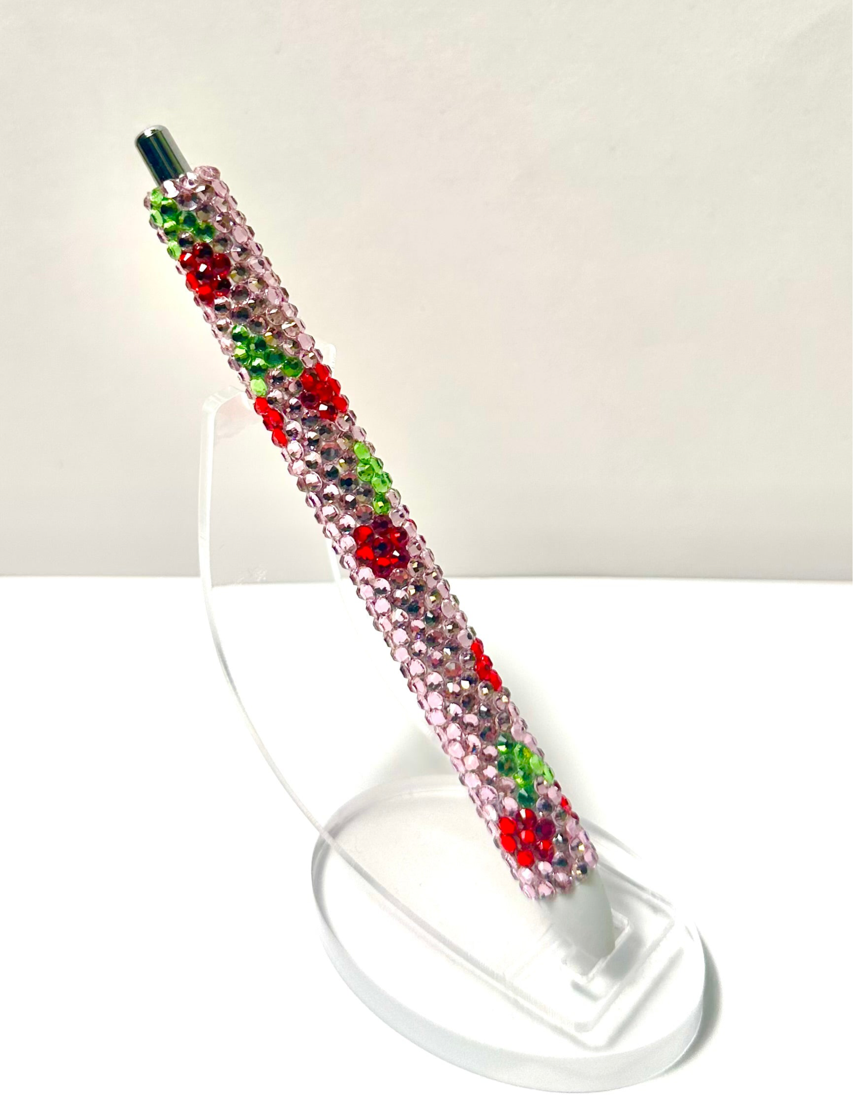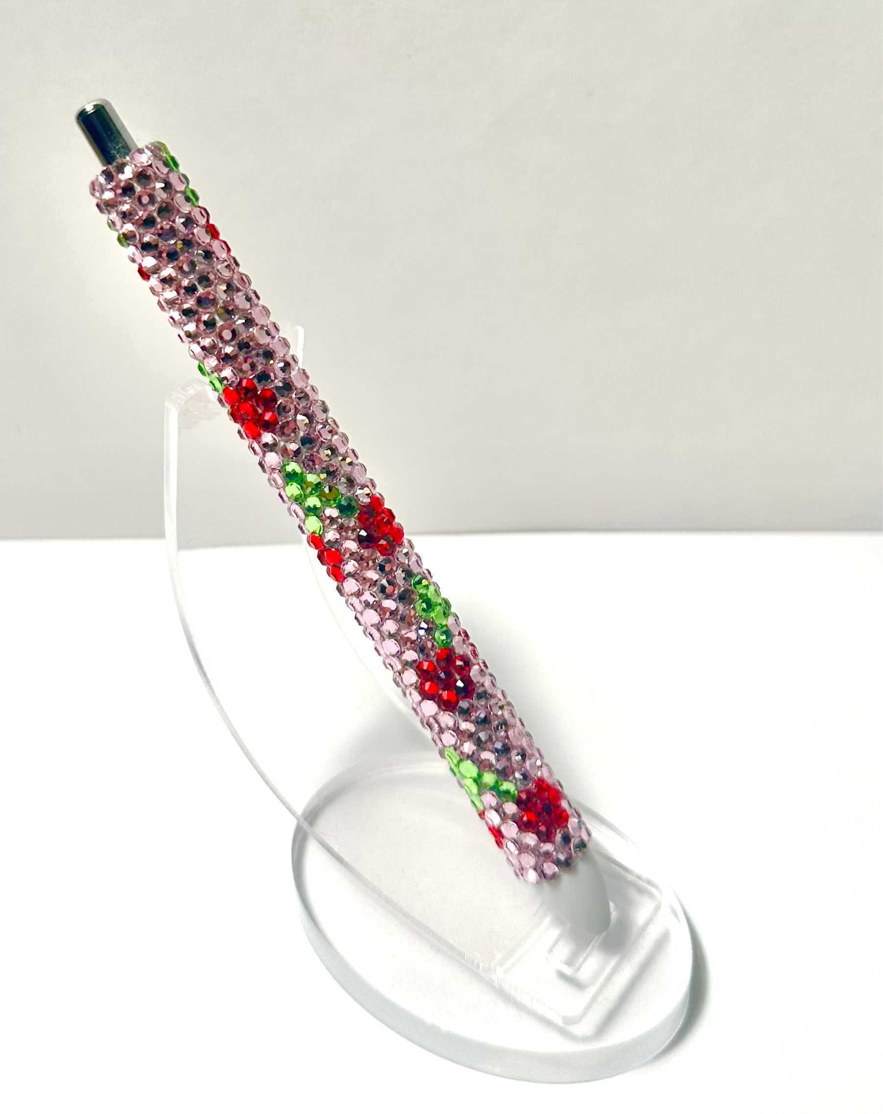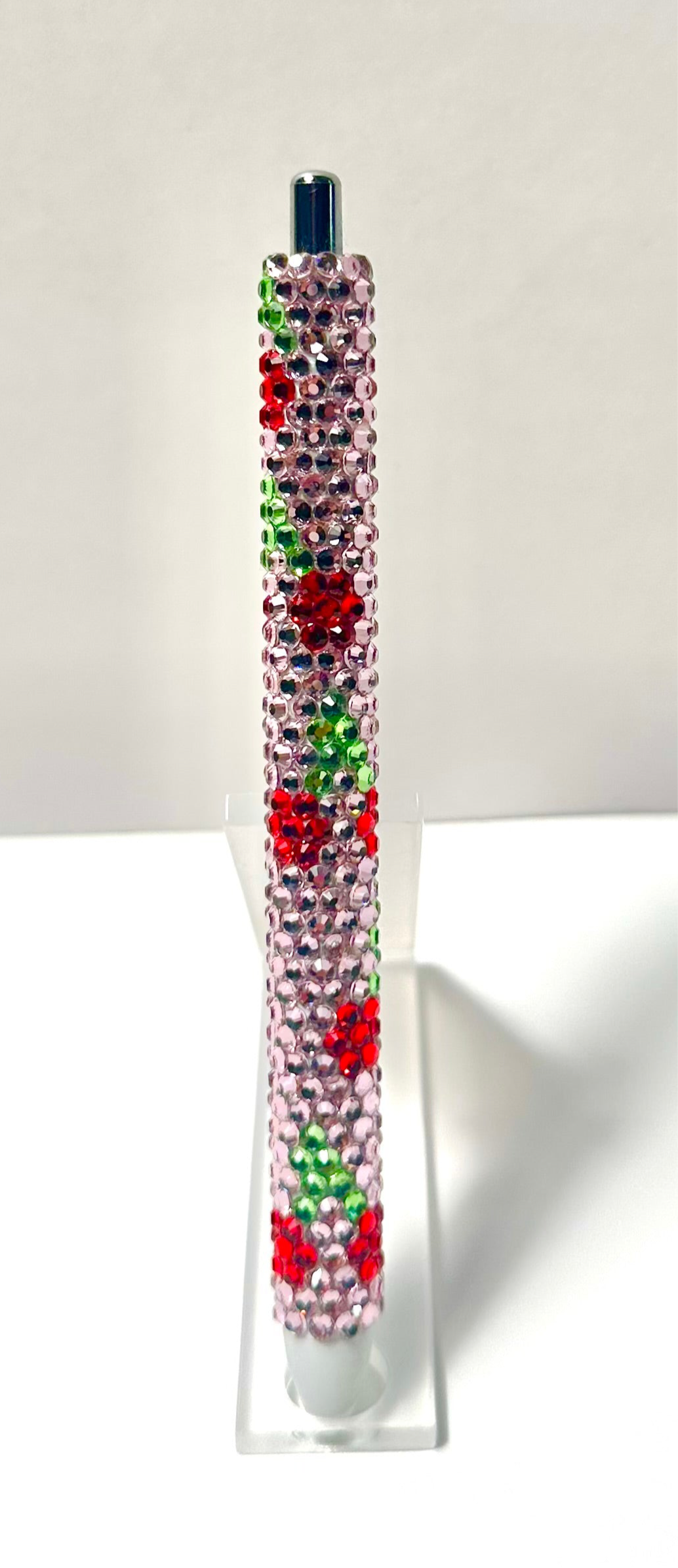 Cherry’s A personal design and hand rhinestone by yours truly on a ink joy White pen that writes on colored and black paper writes in white 0.7 mm