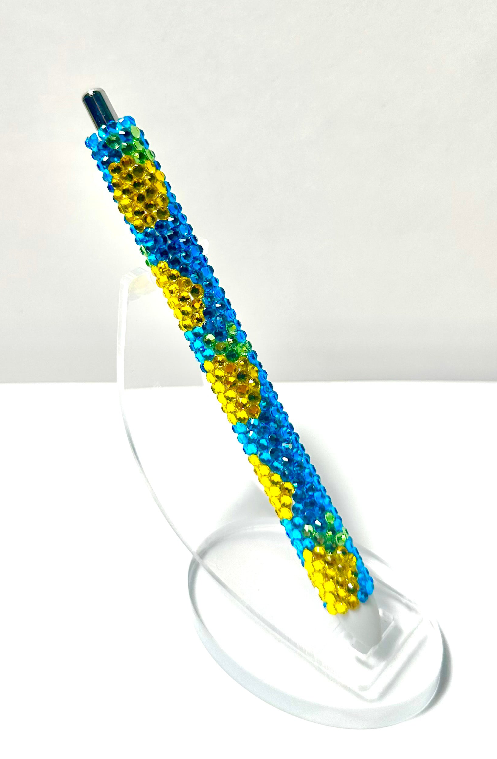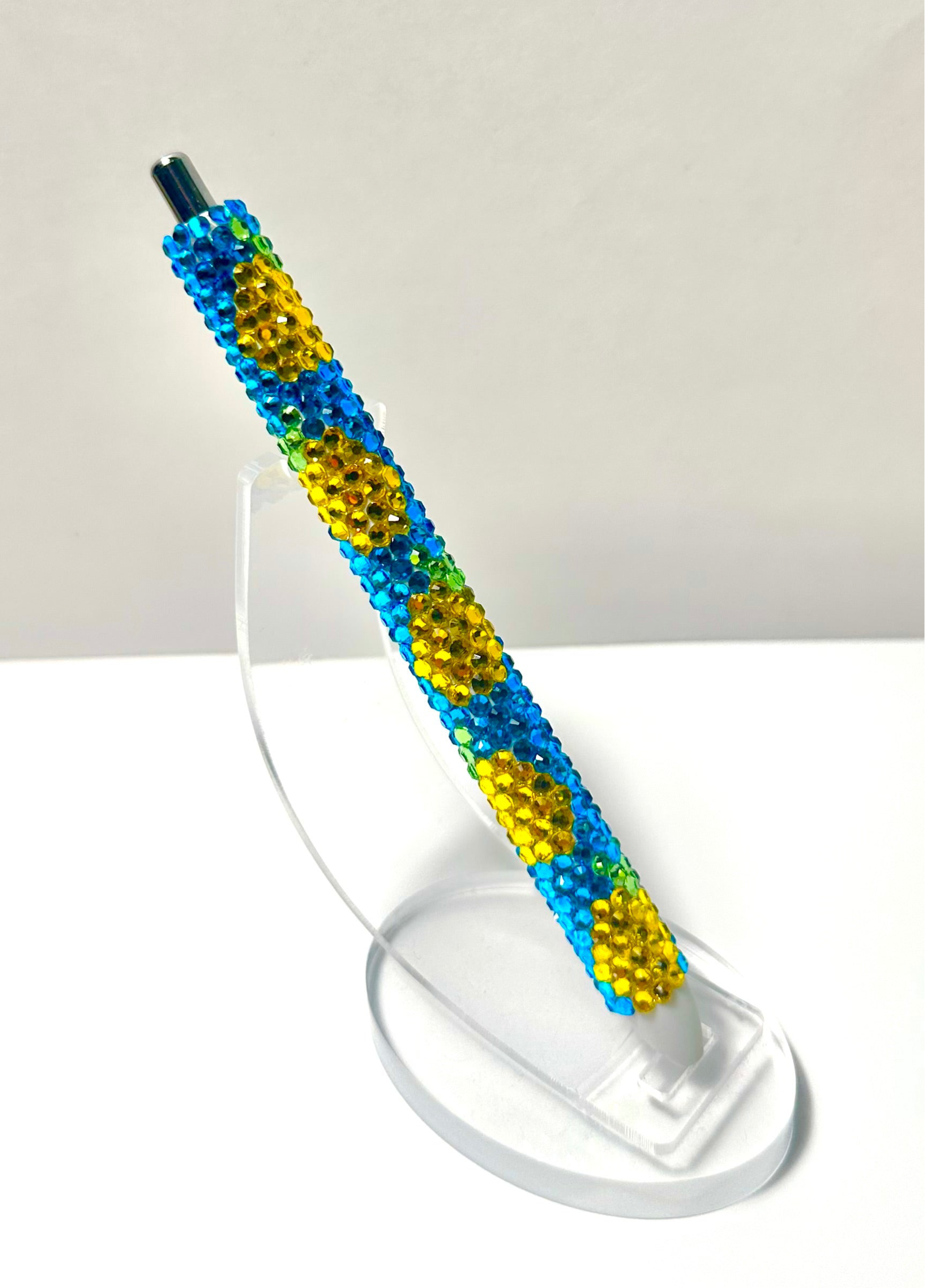 Personally designed hand rhinestone by yours truly, pineapple design on a white ink, joy pen. White pen writes in white ink on colored and black paper writes in 0.7 mm. If you don’t want white, as in, you can always purchase extra inks I have Blue and I have read on the website that you could purchase individually.